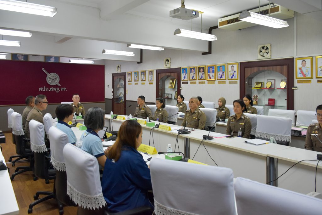 พล.ต.ท.ดิเรก ธนานนท์นิวาส ที่ปรึกษา (สบ 8) สพฐ.ตร. ประธาน, พล.ต.ต.ทนงค์ ทองประดับเพชร ที่ปรึกษา (สบ 7) สพฐ.ตร., พล.ต.ต.กัลป์ ทังสุพานิช ผบก.สฝจ., พล.ต.ต.หญิง สุเจตนา โสตถิพันธุ์ ผบก.ศพฐ.1, พล.ต.ต.หญิง ปิยะเนตร ไชยหาญ ผบก.ศพฐ.6, พล.ต.ต.กำธร อุ่ยเจริญ ผบก.ศพฐ.7, พล.ต.ต.วิวัฒน์ สิทธิสรเดช ผบก.ศพฐ.8, พล.ต.ต.ภาณุ พิทยาเวชวิวัฒน์ ผบก.ศพฐ.9, พล.ต.ต.อนุราช จิตศีล ผบก.ศพฐ.10, พ.ต.อ.หญิง กนิษฐา ชื่นแย้ม นวท.(สบ 5) สฝจ., พ.ต.อ.ภักดี ศุภวิริยกุล นวท.(สบ 5) พฐก. เข้าร่วมประชุมด้วยตนเอง และข้าราชการตำรวจ พฐก.และ ศพฐ. 1 – 10